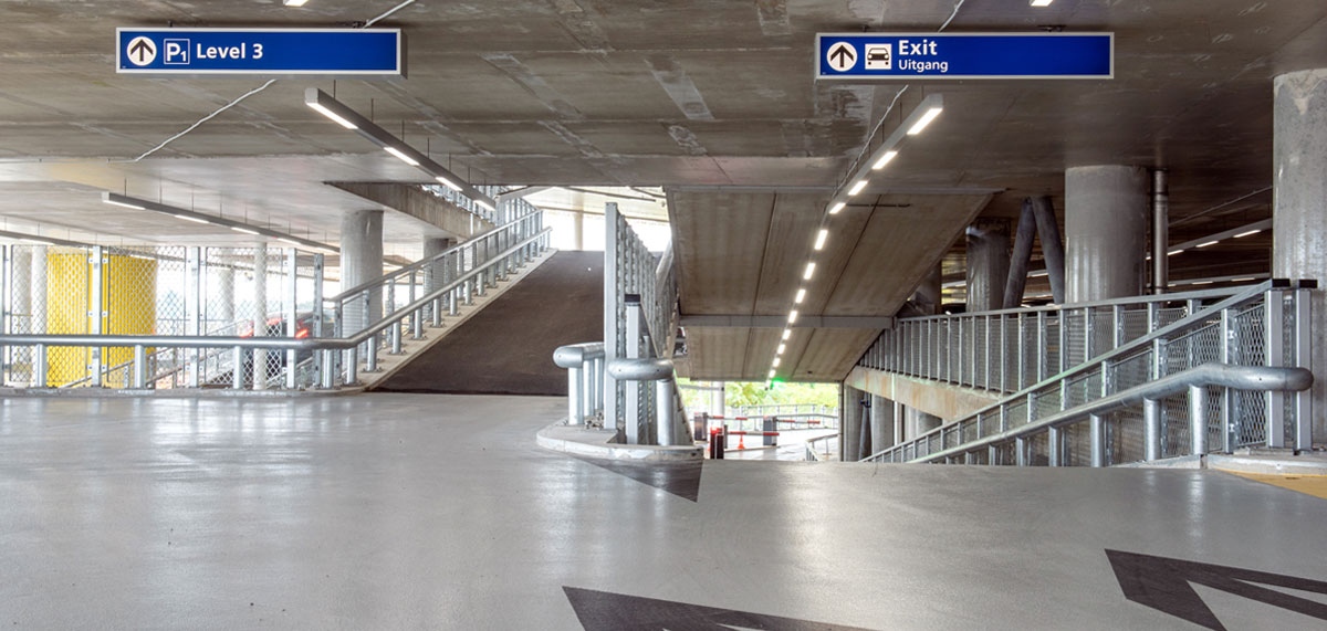 Van hoofdaannemer BAM kregen we de opdracht om bij te dragen aan de herbouw van deze multifunctionele parkeergarage. ‘P1’ ligt tegenover de terminal en biedt niet alleen ruimte voor 780 geparkeerde auto’s, maar ook voor een kiss-&-ride-zone, een overdekte OV-terminal, een grote fietsenstalling en een McDonald’s met McDrive. Naast de concrete uitvoering van het betonwerk adviseerden we ook over de beste aanpak voor dit project op het gebied van bekistingen en ondersteuningen.